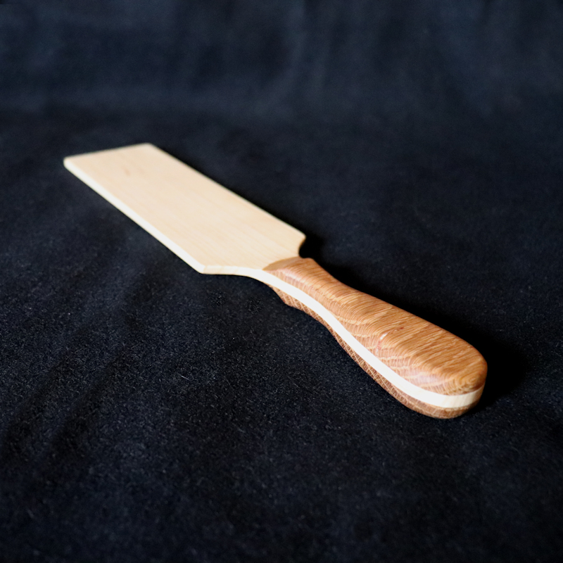 This heavy weight spanker is made from Ash and has a laminated Red Oak handle. Designed to make a significant impact.Width 100mm